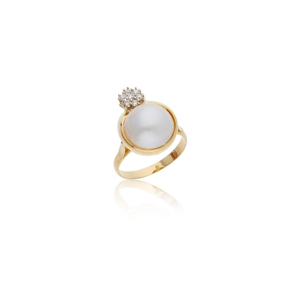 Anillo con Perla Japonesa Natural 1ª calidad, acompañado por un pavé de ciconitas cúbicas engastadas sobre garras de oro bicolor.