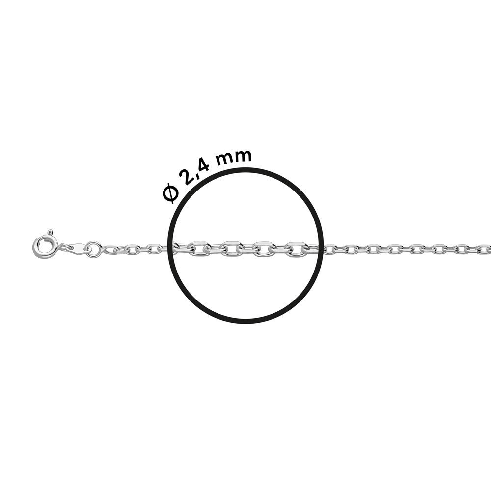 Cadena Forzada en Plata de 1ª Ley 925 mm. Hilo macizo y acabado pulido. Cierre reasa marinera. Grosor 2,4 mm.