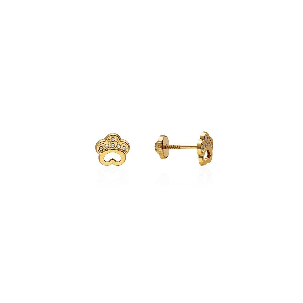 Pendientes Huella Calada Oro 9 Klt. Engastada con 6 circonitas cúbicas de 1 mm. Cierre rosca. Medidas 6 x 6 mm.