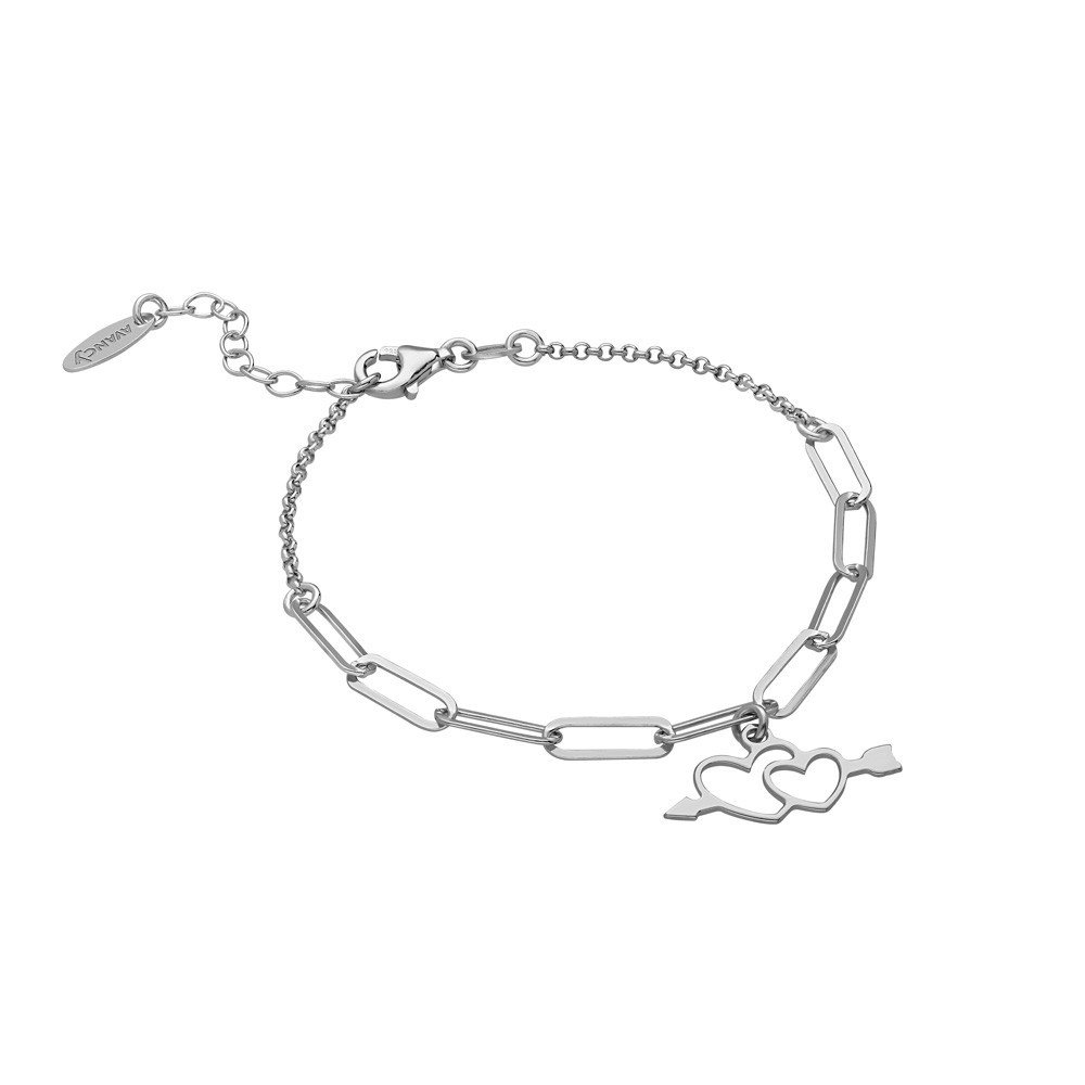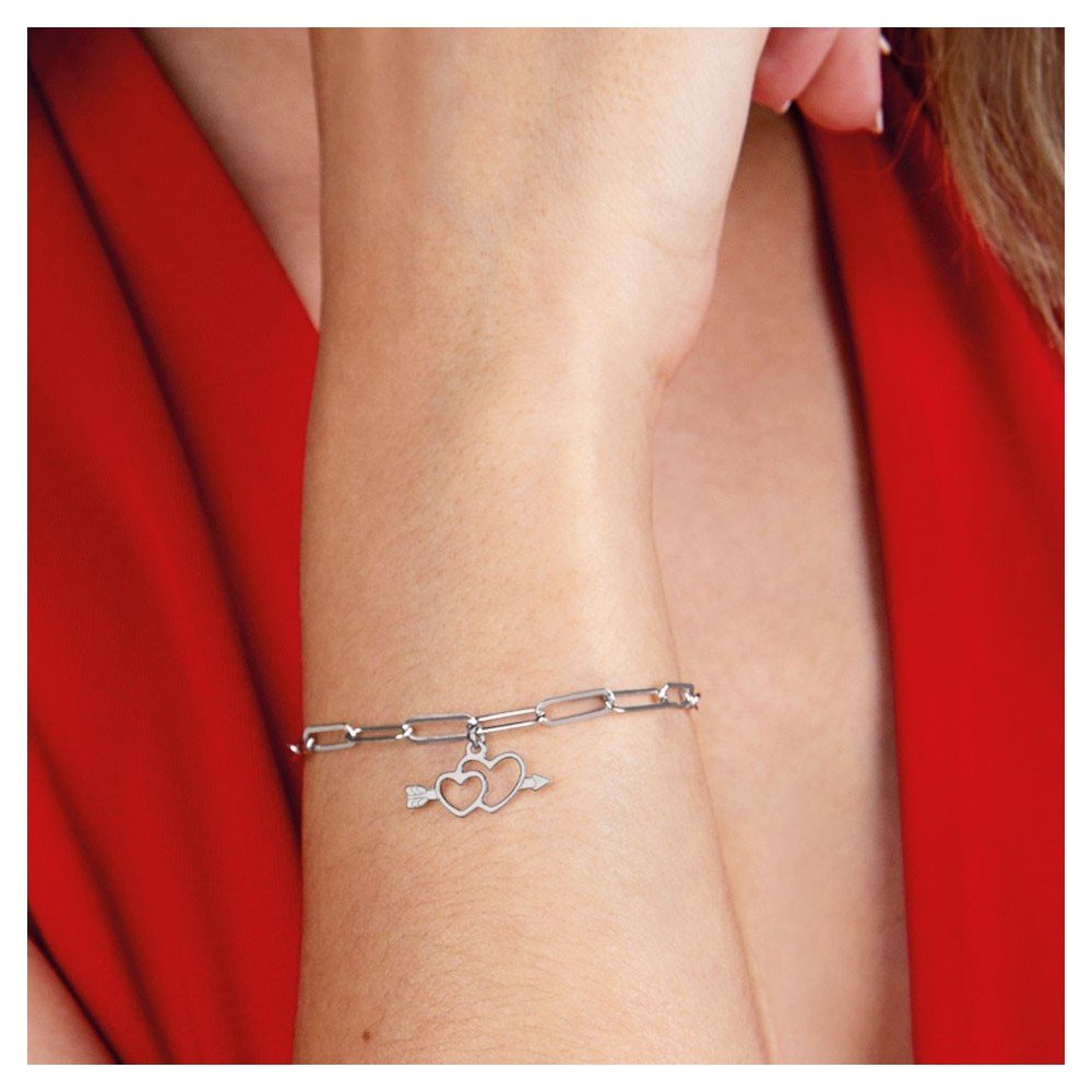 Pulsera Doble Corazón Flecha Plata Ley 925