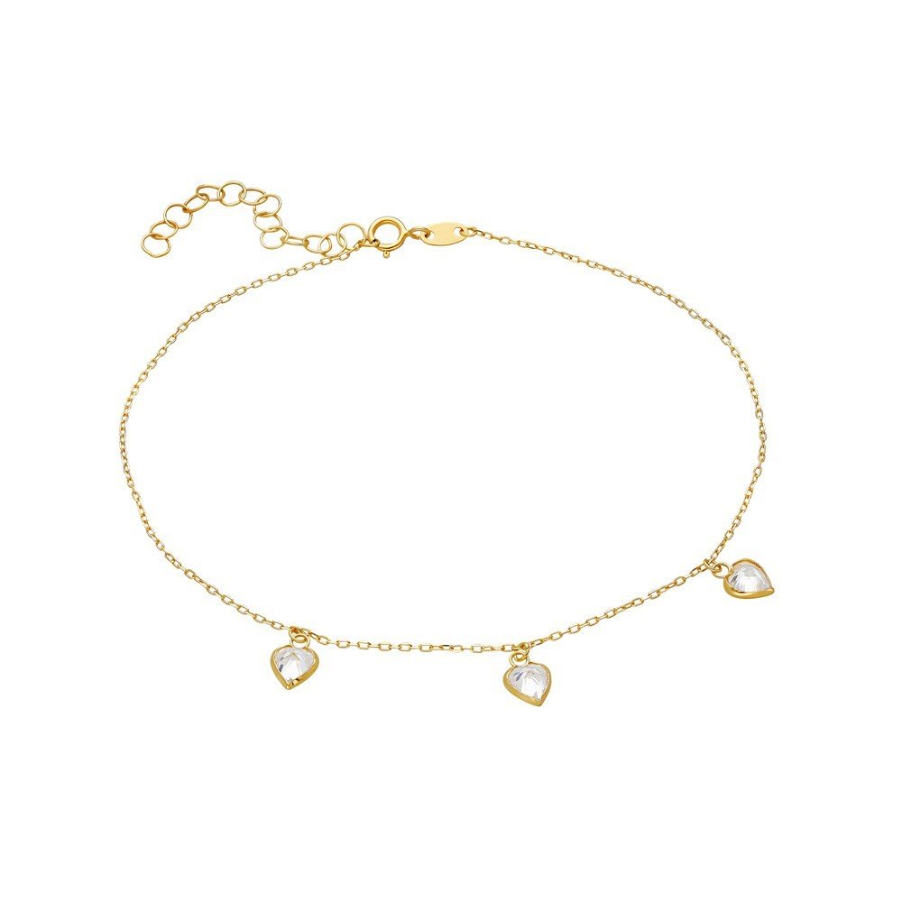 Pulsera Corazones en Oro 18 Klt. indicada para el Tobillo. Está engastados con tres circonitas cúbicas con talla en forma de corazon. Grosor de la cadena 1 mm. Acabado brillo. Largo ajustable de 22 a 26 cm. Medidas corazones 5.5 x 5.5 mm. Una joya muy elegante para lucir en tus mejores fiestas.